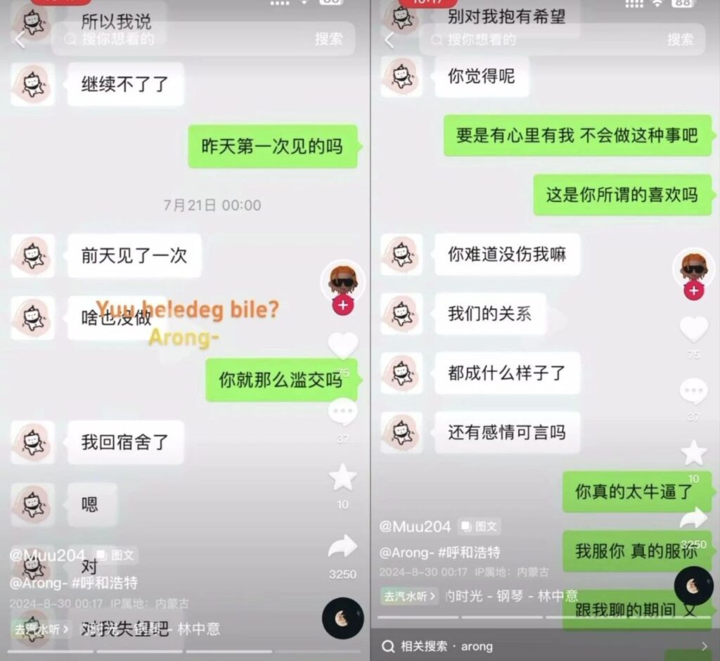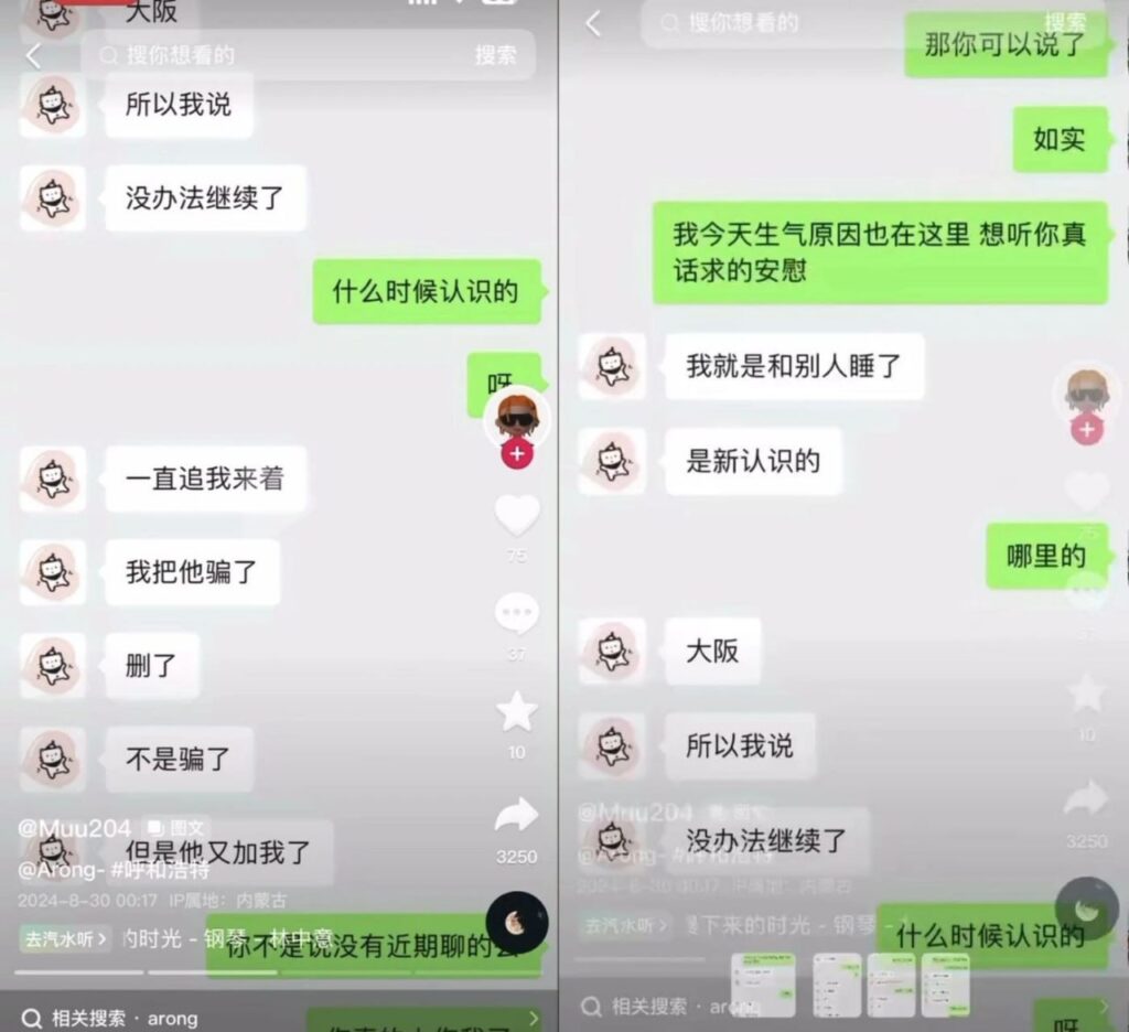 内蒙古赤峰本地网红arong出轨偷情似乎是家常便饭,刚刚认识一天的陌生人都可以一起滚到床上去,男友头顶呼伦贝尔大草原,对男友的质问理直气壮的说出我就是和别人睡了。