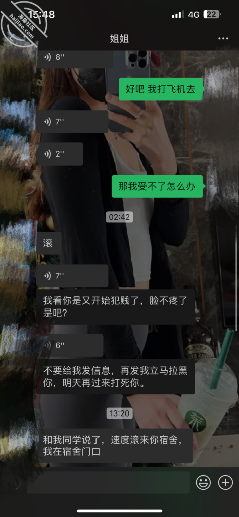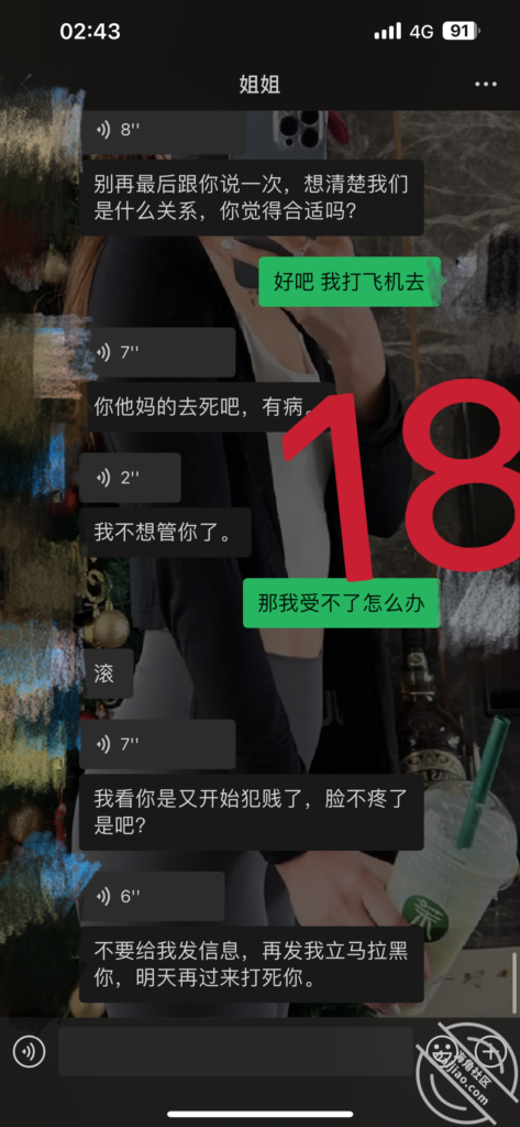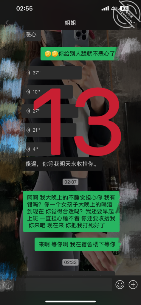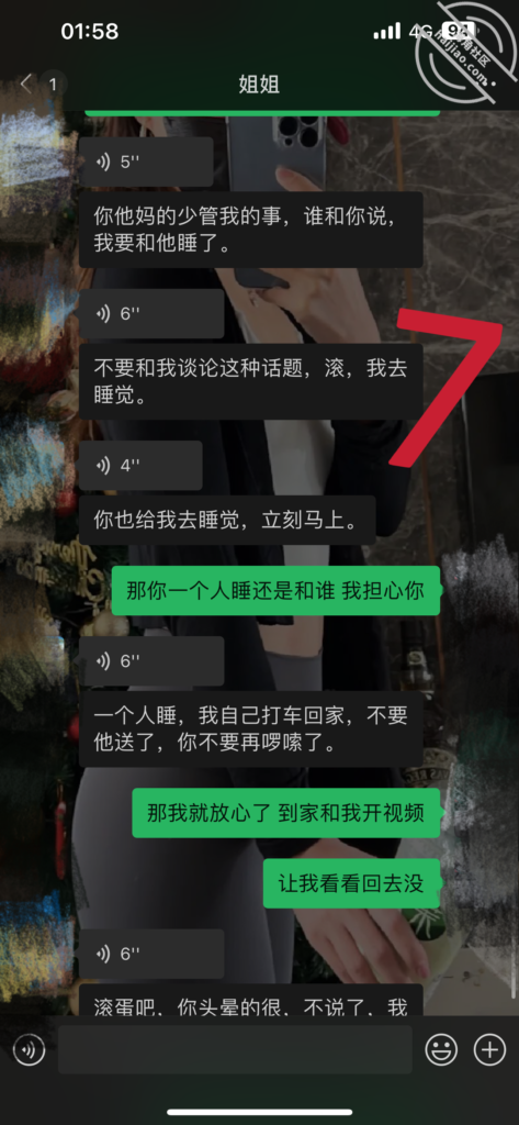 还说有男的送她回去,我立马就急了,别问心心念念Cao不到,又便宜其他男人了,就一直刺激她,然后才说一个人回去,回去了给我开视频,最后视频也没开,明天还要过来打我,有没有被男人Cao我就不知道了,估计又挨Cao了,这个搔B