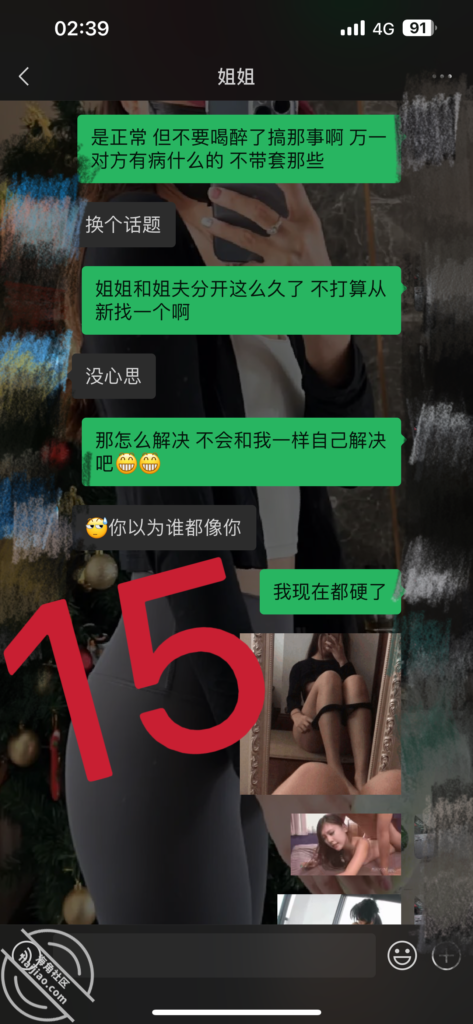 害,谁说的女的喝醉了会发搔,会放荡,我试了也没用啊,明天估计又得吃嘴巴子了,不过勇敢的迈出来了第一步,给搔B姐姐发了黄图
