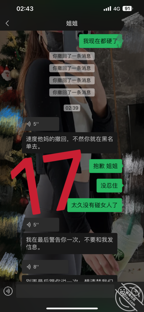 截图麻烦,我把聊天记录录屏了,大家看看,离Cao姐姐的搔B,是不是更近一步了,怕大家看的无聊,我配了最近最喜欢的歌,啊啊啊我的姐~我体贴吧家人们