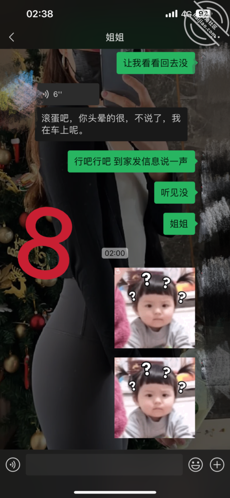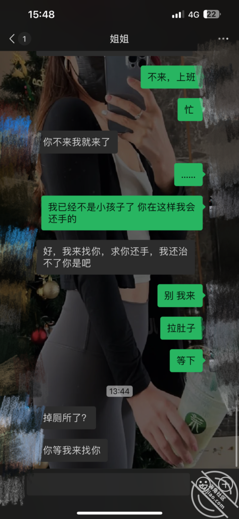 主要是因为高兴,那一巴掌不是白挨的,像拉黑那次一样和姐姐开玩笑,不出意外被她骂了,一看势头,我赶紧抓住机会反将一军,拿她打我说事还有她说我妈发现我打飞机的事,具体的我晚点下班了把聊天记录录屏更新出来,也研究懂视频怎么发的了,截图一张一张p太累了,刚才聊的比较多
