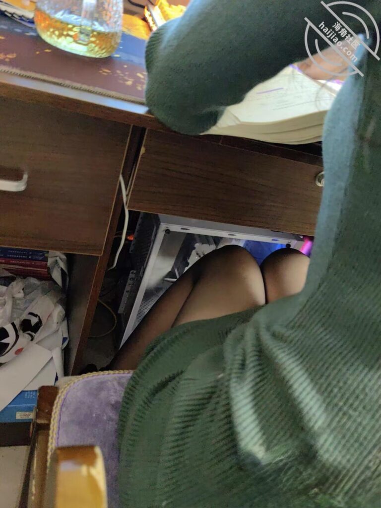 安全裤很松,卧槽,这一瞬间真的硬的不行,赶紧拿手机放大了偷拍,真的太刺激太爽了,搔B今天穿的牛仔短裙,坐在凳子上应该没注意,直接退大腿根部去了