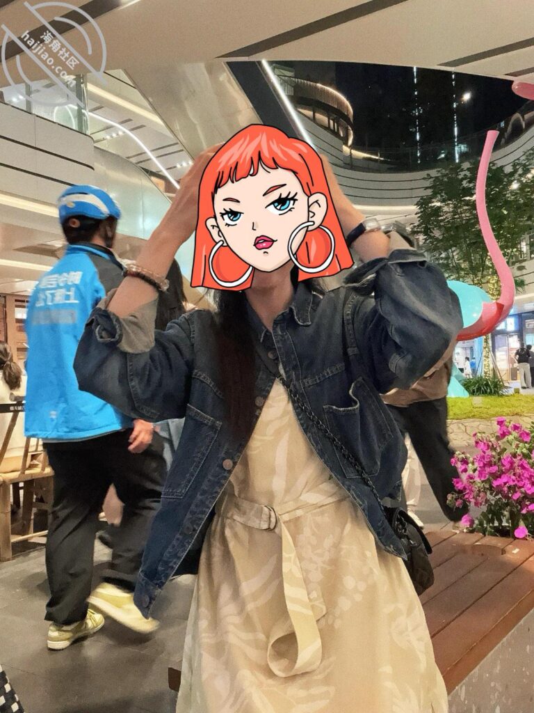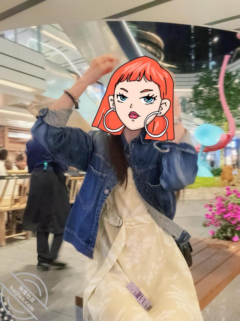 姐姐很高兴,戴上让我帮忙拍照