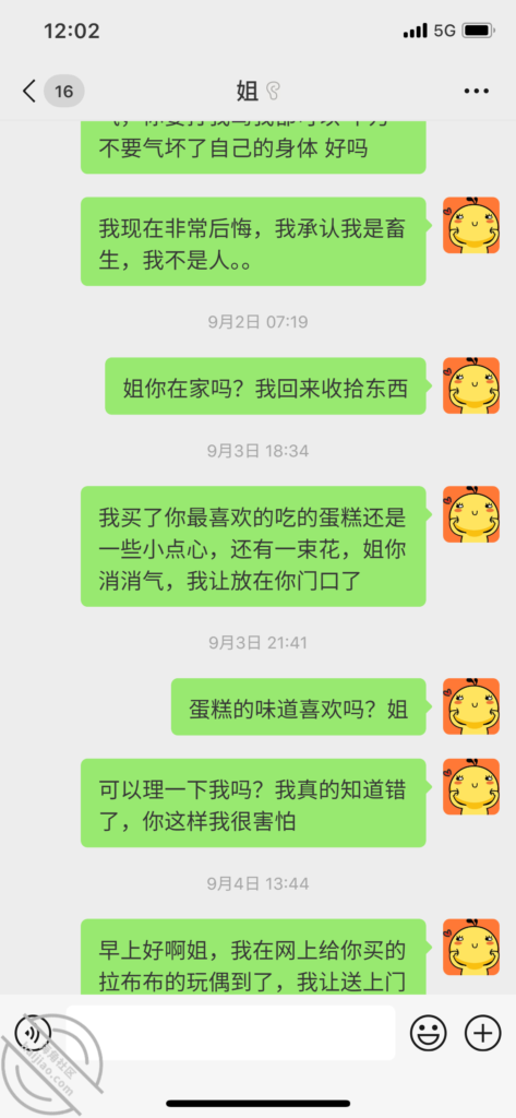 这就是这几天和我姐的聊天记录了,发那么多消息,石沉大海