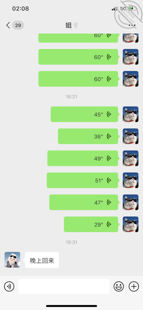 先给大家看看大致的聊天记录吧,天天卫星加电话轰炸,终于把姐姐劝了回来