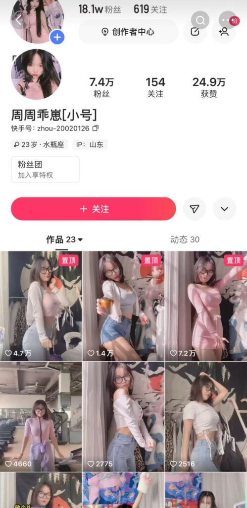 快手萌系擦边8万粉网红周周乖崽,都是眼镜妹反差,没想到会这么反差,社交平台作品卖萌擦边,线下却完全不一样,高价定制大尺度私拍流出