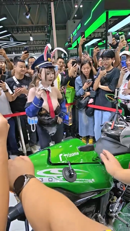 你们这些骑摩托车的嘴捂得的真是一点风都不透,吃这么香竟然不告诉大家,重庆摩托博览会惊现身着兔耳情趣服装上阵的福利姬,那一对大的离谱的巨匈还能摸??