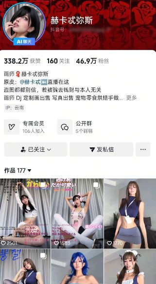 抖音47万粉丝高挑御姐赫卡忒弥斯,抖音上的擦边网红真的是越来越卷,为了流量也是不择手段,这位网红直播时故意把衣服扒开漏匈,整个半球一览无余,毫无疑问的被审核当场送走。