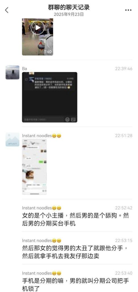 终于看到舔狗的反击了,苦主给自己主播女友分期买的手机还没还完,就被小有名气的主播女友分手,还拿着苦主买的手机打算去买二手,没想到苦主竟然联系分期公司把手机锁死,当场抓到女主播。
