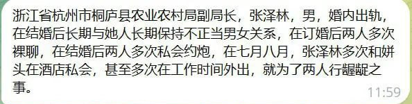浙江杭州桐庐县农业副局长张泽林婚内出轨知三当三