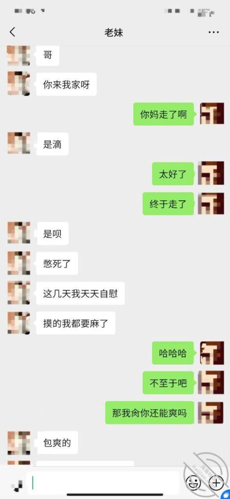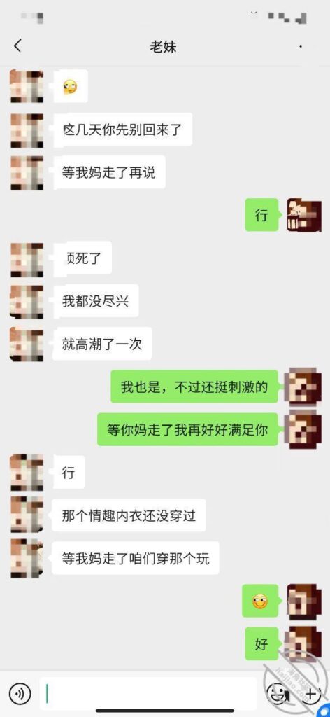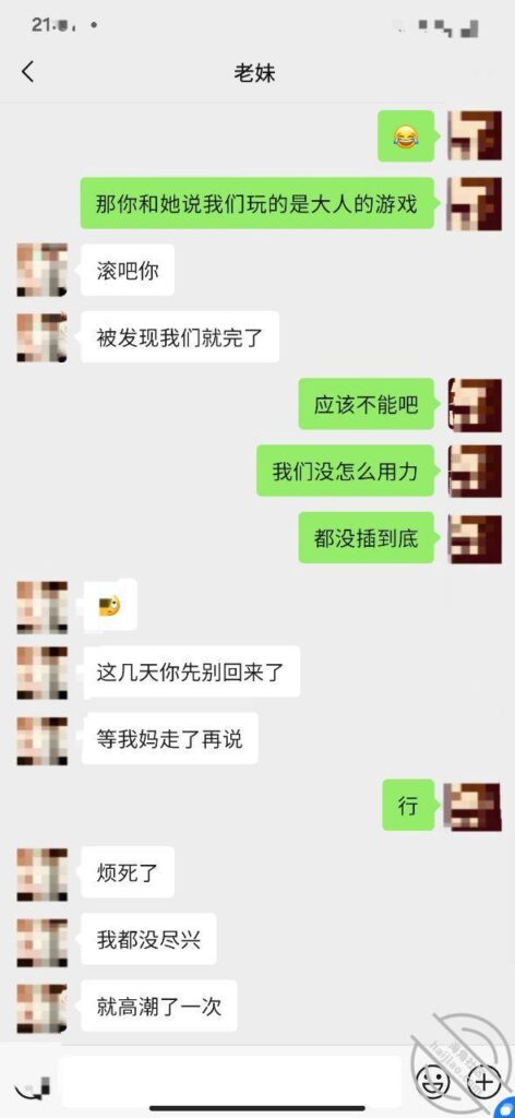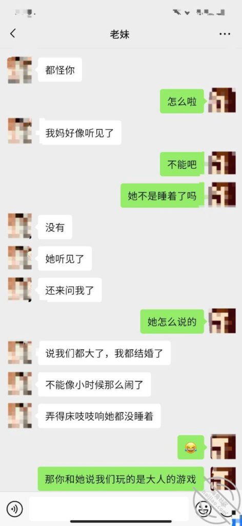 堂妹给我发微信,告诉我她妈妈好像发现我们在那屋干什么了,她妈妈根本没睡着。