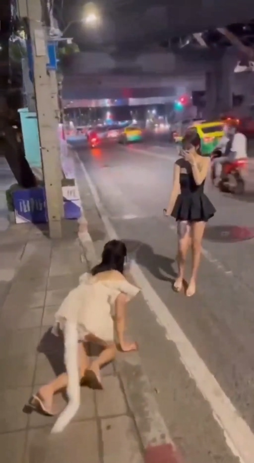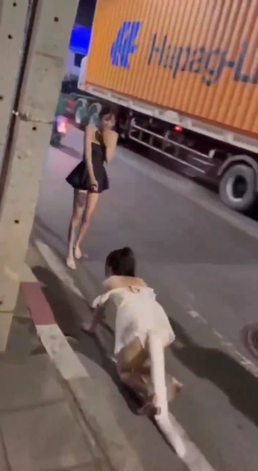 晚睡还有惊喜?深夜广东街头惊现sm圈大佬户外训练,一名身穿黑色短裙的女子牵着一名穿着白色短裙的女子在街头行走,路过的摩托车小哥都快看呆了。