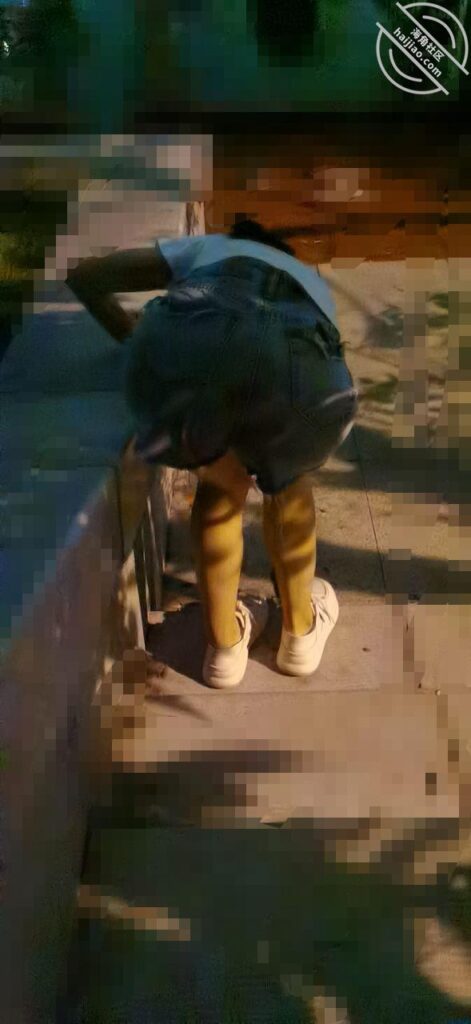 让她知道哥哥还是爱她的。妹妹扶着路沿石擦拭了她的鞋子,趁着这个机会,我摸着她的屁股,从短裤试着能把手更深入的进去。