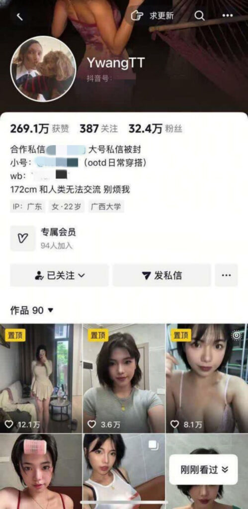 抖音上以高颜值和丰满身材著称的女神 ywangt,其私拍视频在网络上迅速走红,堪称许多男性观众心中的顶级福利。她清纯的面容与火热的身材形成鲜明反差,引发大量粉丝追捧与热议。