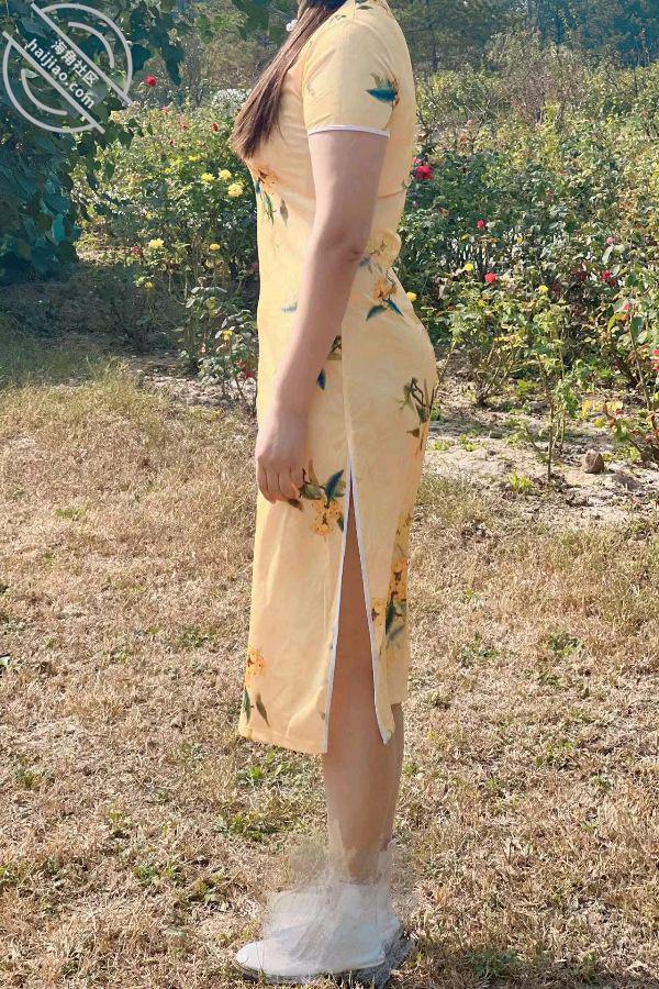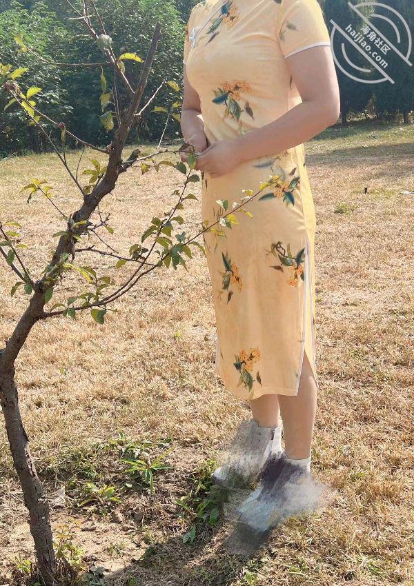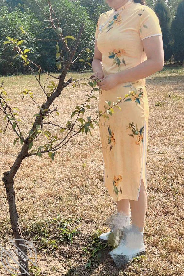 39.继父公园给我拍的旗袍照,老妈还夸漂亮