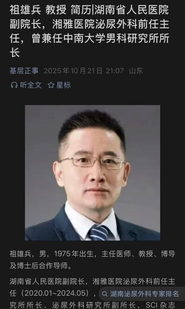 湖南省人民医院副院长祖雄兵被曝光不雅视频,这位主任医师婚内出轨,被指责乱搞男女关系,甚至还涉及到权色交易。