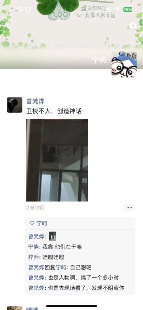 小小的一所卫校,竟然能出了这么多人才,一对大学生情侣在教室楼梯间整活,本以为不会被发现,其实早就被拍个一干二净,这还没完,事发地楼梯间,怎么也想不到被精神堪忧的校友当成了打卡点,一帮学生前来打开拍照,寻找二人宗教斗争留下的痕迹。