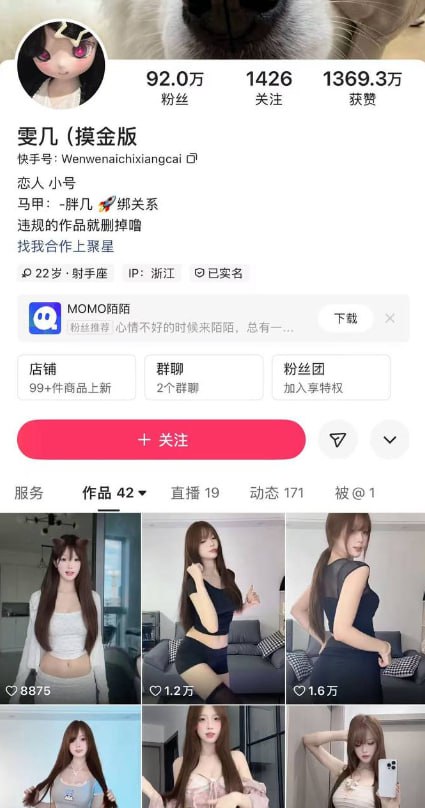 快手“纯欲风”主播小雯胖几,粉丝约有92万。她以清新中带些性感的风格著称,年轻甜美的外形与成熟魅力形成明显反差,因而深受资深观众喜爱。