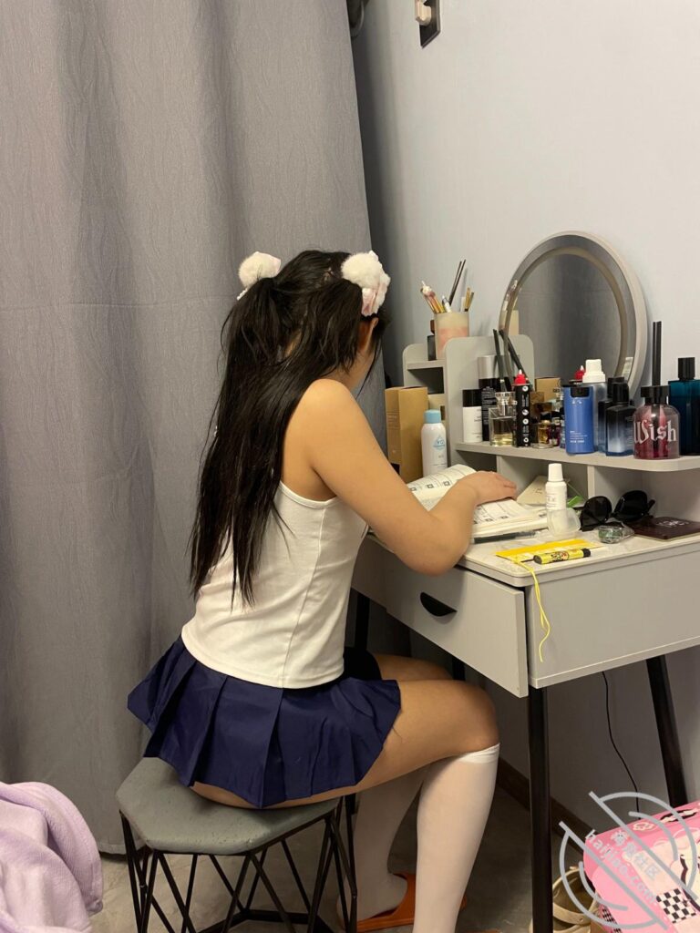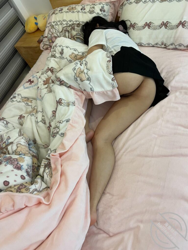 想上去看看继女睡着了没,结果进到继女房间继女睡着了,但是我看到了继女的穿着一身类似学生的制服,竟然露着一个很大的屁股在外面,就是没穿内裤。