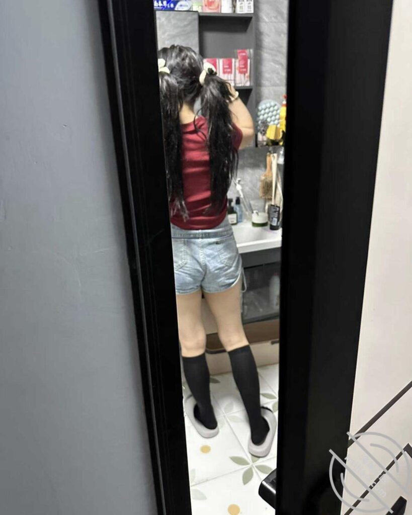 当我来到浴室门前,我犹豫的停了下来,因为里面传出来的花洒水声告诉我正有人在使用浴室中。「是琪琪在用吗?」我这样想着,可是单靠凭空想像终究得不出答案,倒不如亲自探讨一下哪来的何方妖孽胆敢使用本家的浴室!因为这只妖孽竟然连洗澡也忘关把门关好,留了一道足以一眼的缝隙,所以我只好利用这个好机会看看到底是何方妖孽。也许是我明知故犯吧,家里除了继女外,还有谁会用浴室?
