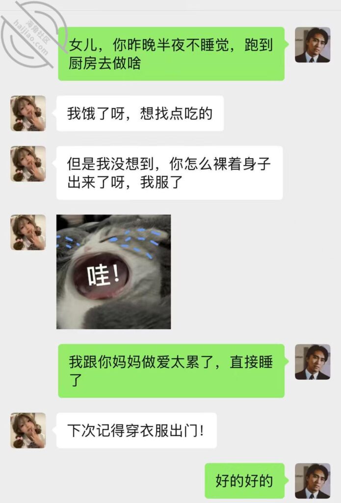 我衣服也没穿就直接睡了,导致我起床上厕所的时候也光着身子出来了,我跟继女打了一个照面。