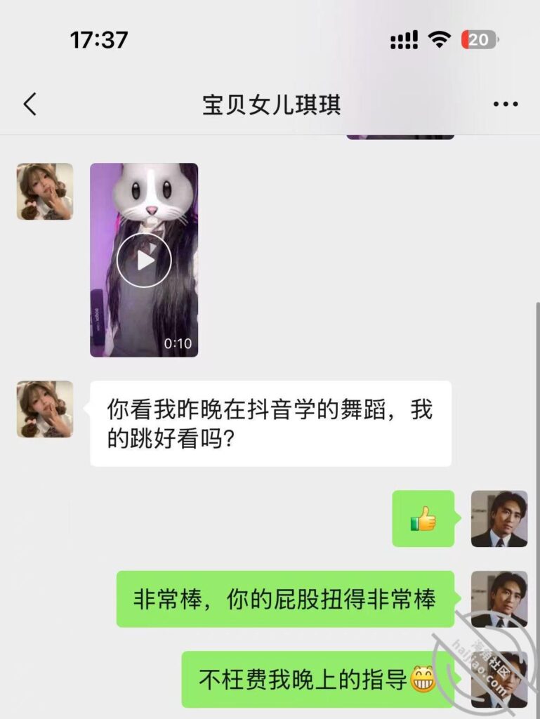晚上跟继女老婆一起吃完饭,老婆去小区楼下遛狗,继女在客厅学习那些小年轻的抖音热舞,屁股扭来扭去,我就在后面笑话她扭得不行,她跑过来朝我撒娇,让我不要笑话她。