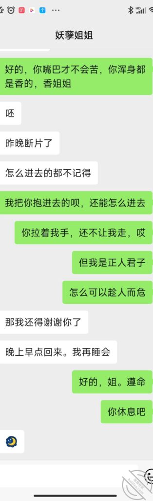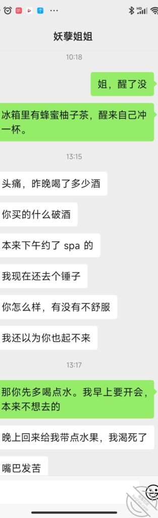 总算活过来了,一上午不停的喝水,这会才吃了碗面条,复活了。姐也回我消息了,其实一个上午我也蛮担心她的,毕竟昨晚喝的真的不少。果然断片了。原本还想等药到了才落地实践,通过这两天的试探,以及昨晚的游戏,我已经按耐不住了,准备今晚跟她吃点夜宵,再玩点游戏,直接升级难度,起码得先把她的嘴巴拿下,也好让我的小蝌蚪有容身之地。
