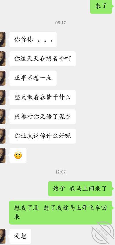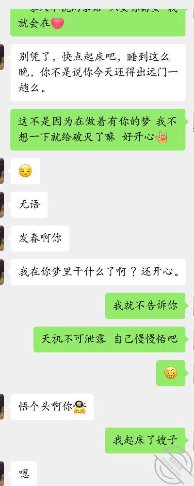 可谁曾想我一起来看到堂嫂的回复后心情顿时好起来了 可以说是激动 喜出望外吧 我真没想到堂嫂会因我而感动 难道真的是体会到了我对她无微不至的关心了嘛 她这出乎意料的回答让我都不知所措 不知道怎么回复她了 后来我又借机挑逗了一下堂嫂 告诉她我梦里有她的存在 暗示她我心里有她 还好 她还没跟我发脾气 这要是搁之前 非得给我来一顿批评 我心里的一块大石头也落下来了