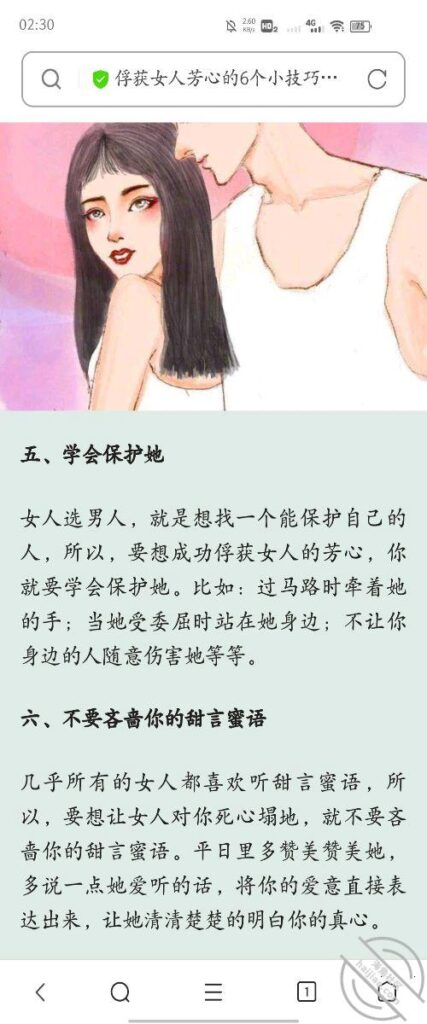 兄弟们 兄弟们 我今天无意间看到一篇文章 里面讲了一些关于意银对象东西 我没有特别认真的看 但是最后写的就是这样行为影响了每个人的生活 看完之后我有点纠结 都有放弃的想法 可是我觉得我努力了这么久 也付出了挺多了 堂嫂对我的态度也不是那么冷漠 严肃 所以我决定要走到最后 哪怕不欢而散 最起码堂嫂也不会把我们之间的事给捅出去 不然对谁都不好,我上网查了一下关于虏获女孩子芳心的帖子