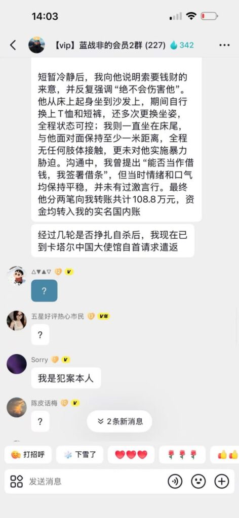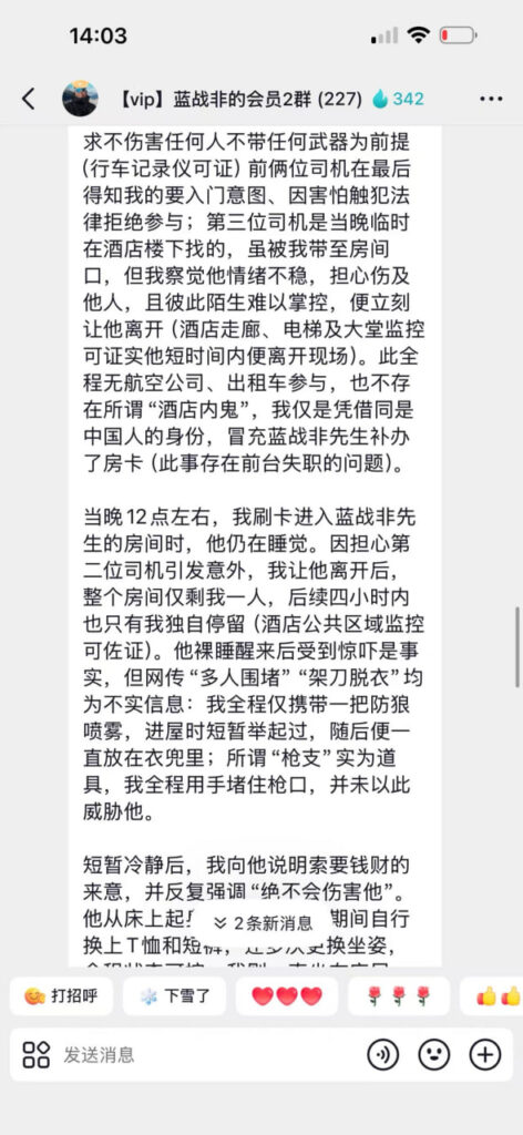 想不到一个绑架案竟然能吃到这么多瓜,蓝战非在南非被绑架一事竟然还有后续,疑似劫匪在粉丝群内自曝绑架原因。