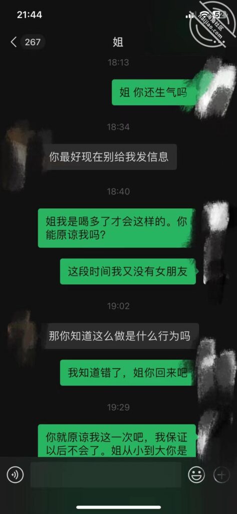 直到我现在发视频,我姐还在房间里哭,我都不敢进去安慰她,事情发生后我真不知道怎么面对她,我想过很多后果,但伦理的这种心里让我无法自拔,在这向大家求助,我要怎么处理,该怎么做我姐的心里工作,拜托大家了
