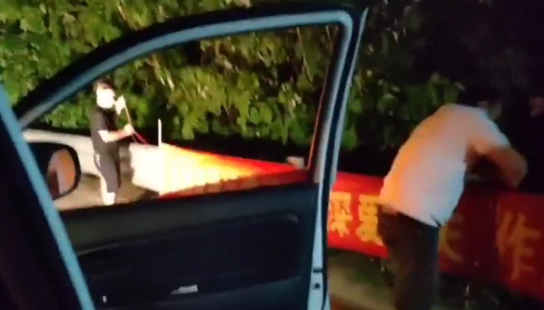 湖南永州上岭桥镇渣男出轨被发现挂横幅示威小三