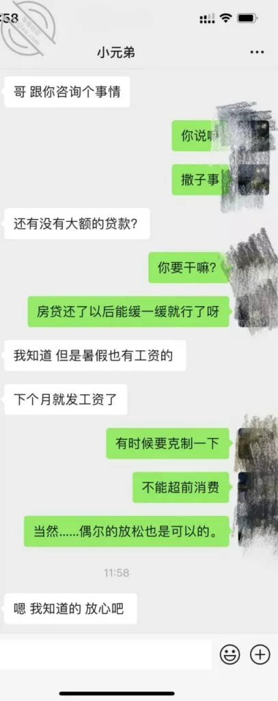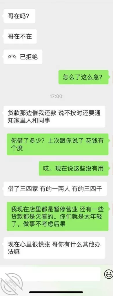 我不可能告诉她是果贷,只是说自己认识的这个人门路多,问问他或许能有什么办法,最后在假言相劝地付出几句“忠告”,让他远离网贷,更要远离高炮,当初是让你们借一点应应急,怎么能借这么多钱呢?