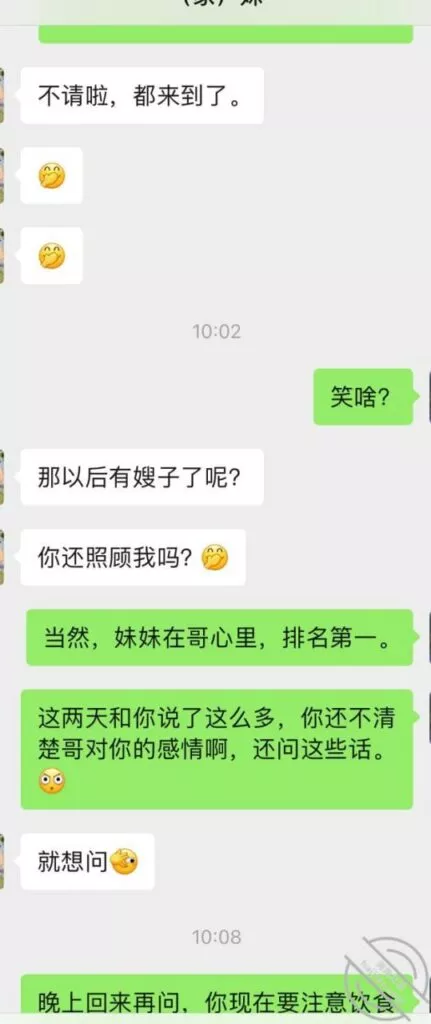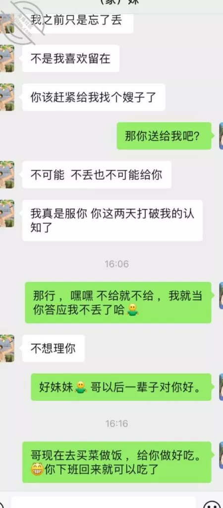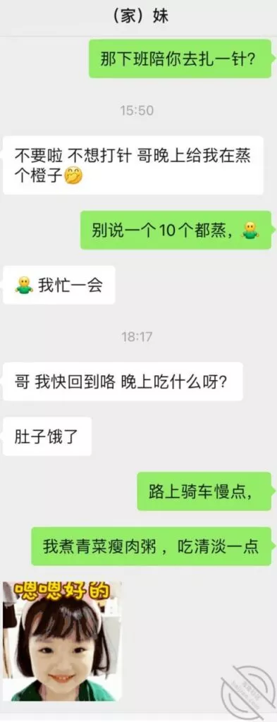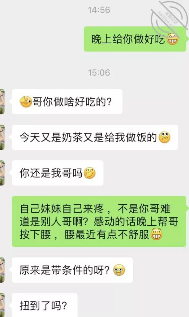 边做菜边发帖,心里有点高兴,所以来给海友们分享一下。和我妹的关系更加亲近一些了。不过我感觉为什么我妹跟我微信聊天更轻松一些,面对面的话我也对她说不出这些话,她也不会这么回我话。是把我当网友了吗😆这氛围我很喜欢,有点恋爱的感觉😳