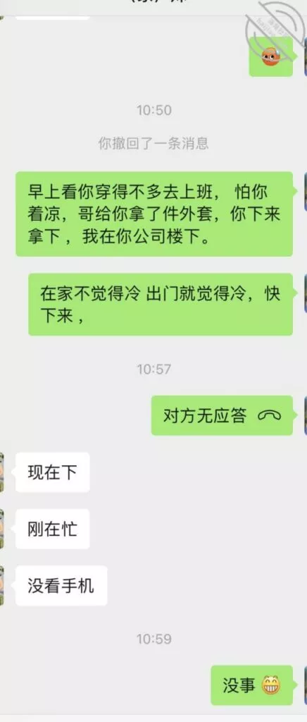 我那会和我的伙伴在一起忙工作呢,不方便跟她聊,也没想太多