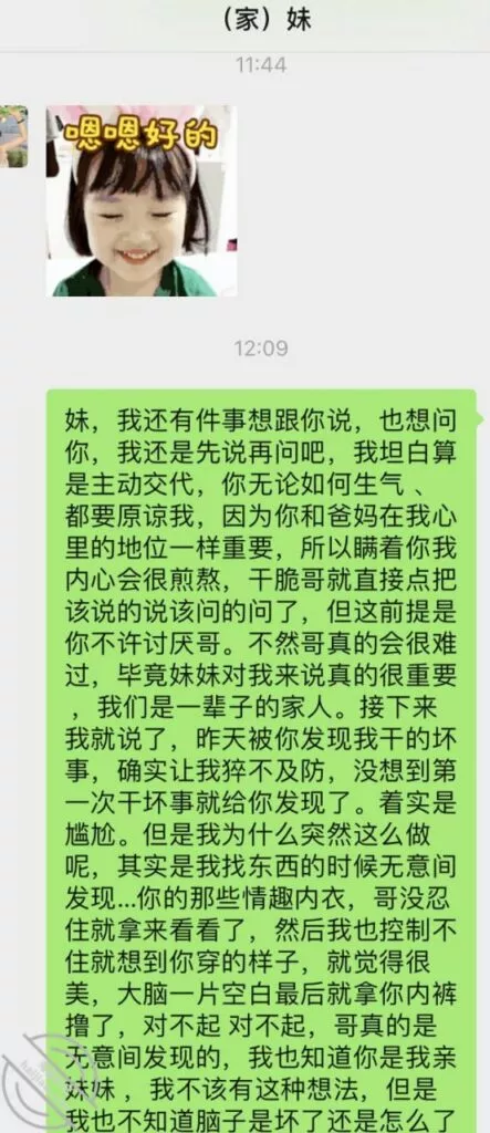 7.从跟妹妹坦白看到她情趣内衣后,妹妹的回复稍稍让我有点小意外,因为回复我时比较平静,接下来分析她行为和内心