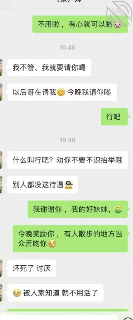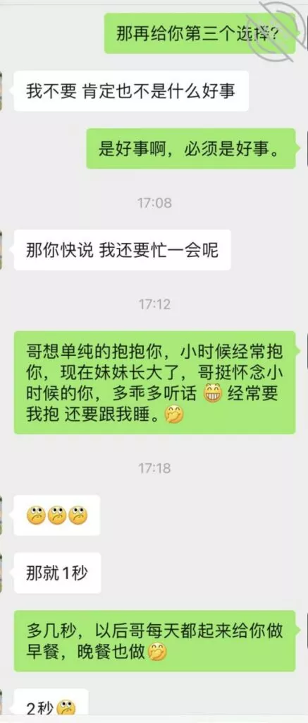 还想亲我妹,我妹一直挣扎 说不要这样子。看我妹一直推他,后面也就放开我妹了。
