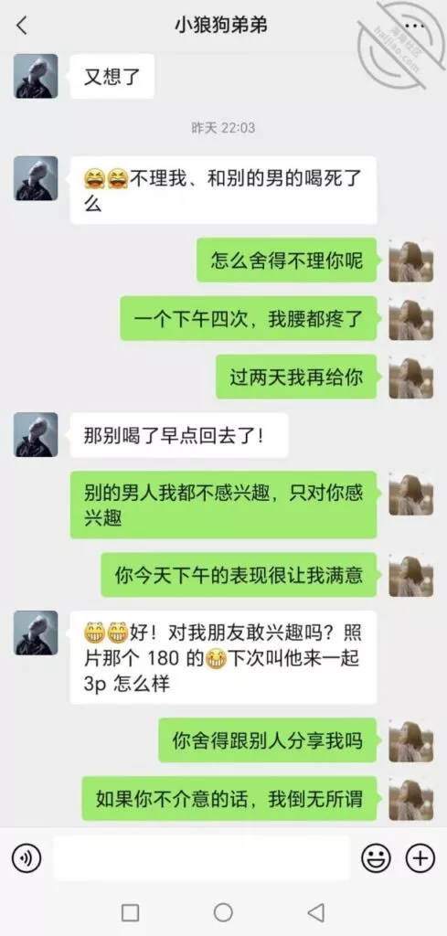 半夜十二点我下班了,回来发现她还没回。心态好炸裂这搔B要给Cao烂了现在还不回。一直到半夜三点左右她才回来一身酒气,我假装给她吵醒说了她几句喝那么醉。给她温了瓶扔,在她去洗澡的时候,悄悄把她手机打开看了和那小狗的聊天是出去约了,先车震在去开房还拍了车上的照片。这搔B真会玩。那小狗还发了照片过来这身材别说女人都喜欢。他们八点就分开了,后面又和其他去了酒吧玩才和个烂醉回来。。。看着她和小狗的聊天记录一下子就硬了,真想脱光衣服推开洗手间的门进去把她歼了。。哎。。没那胆。