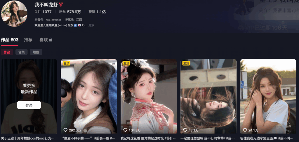 抖音粉丝达578万、以擦边风格走红的网红“我不叫龙虾”,这次的人设可谓彻底崩塌。她在《王者荣耀》官方十周年庆典上Cosplay嫦娥,刻意营造反差并以不雅举止吸引注意,结果引发全网热议。原本冰清玉洁、带有神话色彩的嫦娥形象,在她的演绎下被塑造成举止怪异且失去分寸的模样,令不少网友感到失望和不适,引来大量批评与讨论。