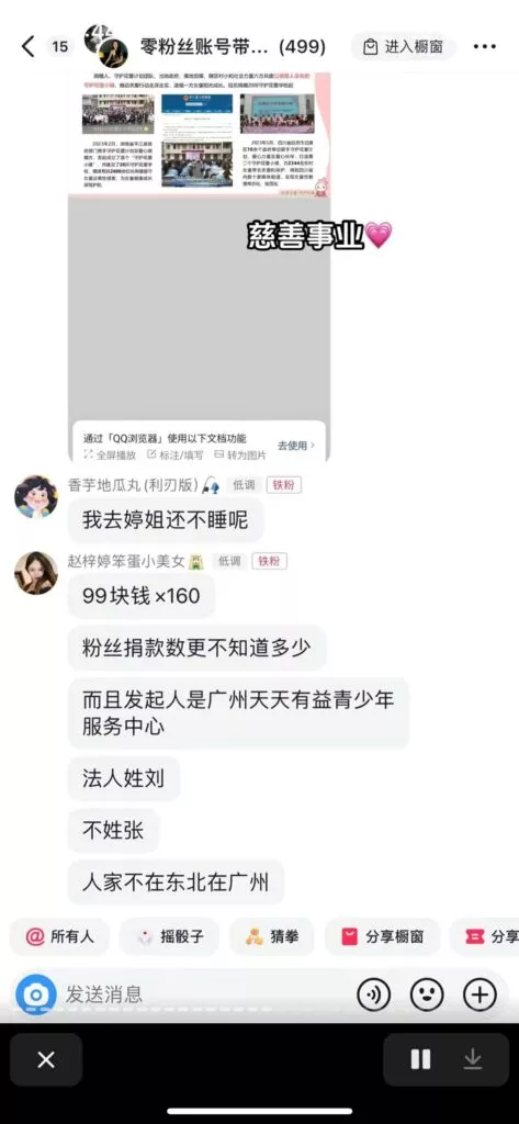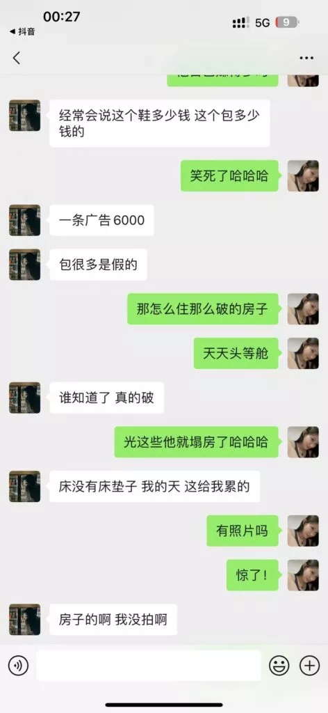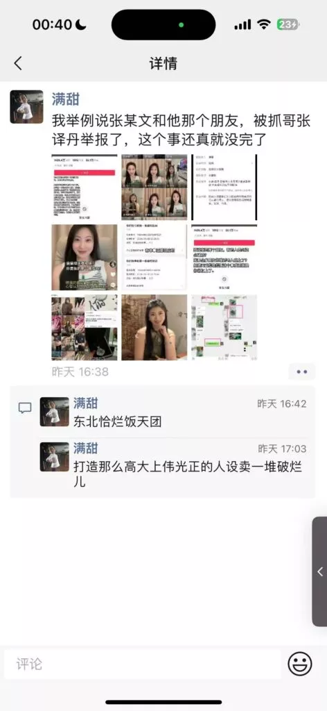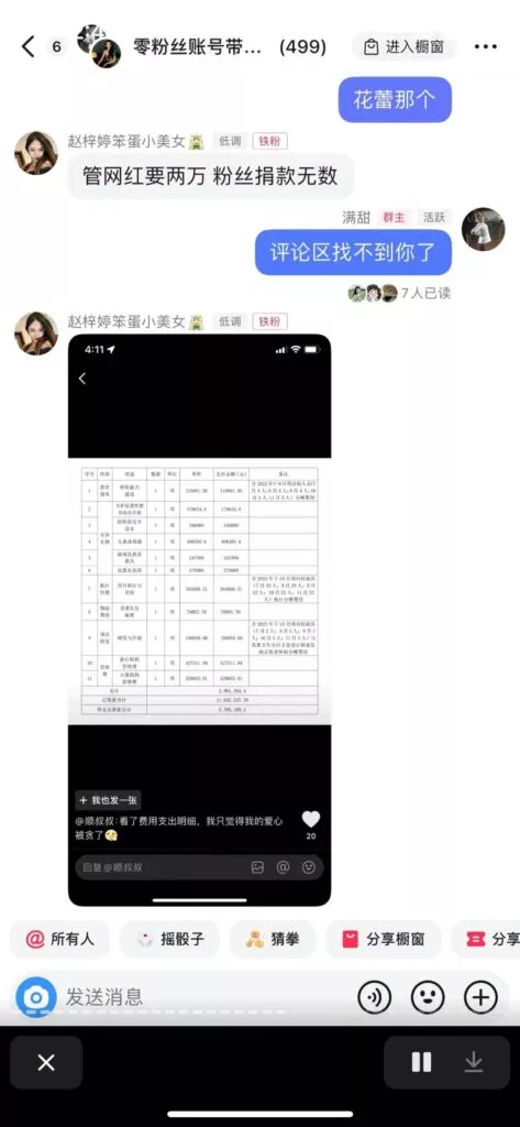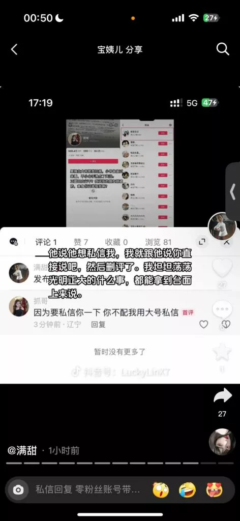 同时,抖音35万粉丝网红抓哥张露文的好闺蜜,同样打造自己大小姐人设的另一人在直播时,为张露文开脱说好话,劝粉丝不要相信那些假话。