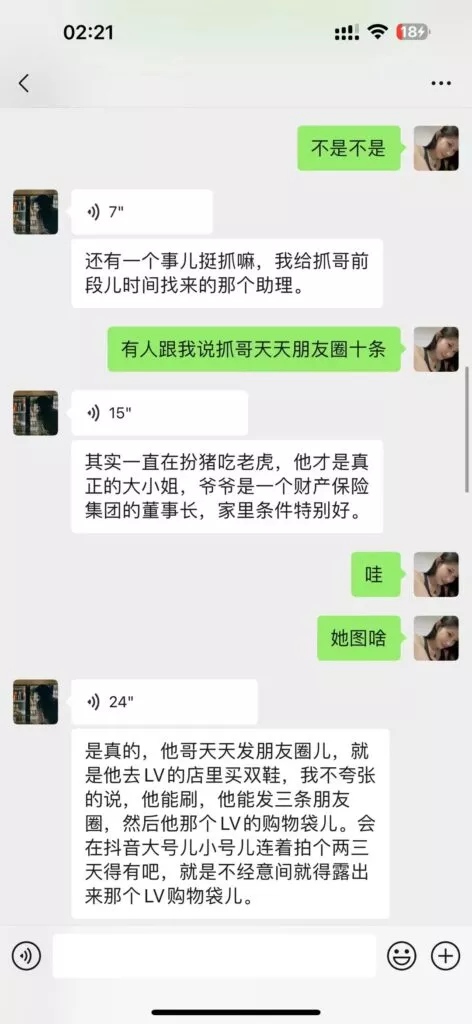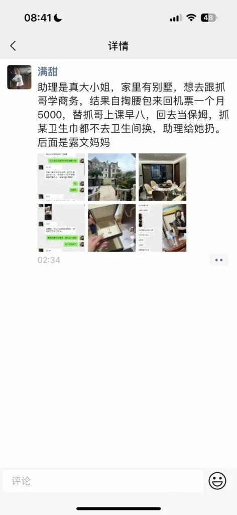 但不巧得很,这位石锤张露文的同行,一不小心就扒出抓哥的黑料。曾经做过抓哥助力的线人提供了大量石锤资料,其实这位助力才是真正的大小姐,住别墅有豪车