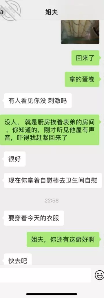 今天晚上姐夫突然发来消息,我以为姐姐睡着了,姐夫偷偷的给我消息,结果姐姐打牌还没回来,看来姐夫已经对我欲罢不能了,直接开门见山的说要玩我,并且在提sm,没想到平时老实的姐夫还是个闷搔型呢。