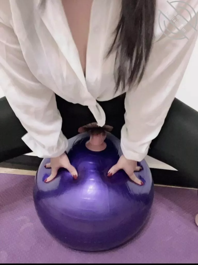 )当时脑子里就一个想法,想要JB,想要被狠狠的干,我拿出我的情趣瑜伽球,开始抚摸上面的假鸡吧,在次幻想着这就是姐夫的阴茎,我从龟头一直往下,用手指轻轻的剐蹭,脚趾倒满润滑油,开始轻轻的踩弄,真的受不了了,我直接骑坐在上面,开始有序的进进出出,快感也随之而来,一浪高过一浪,瞬间我来了第二次高点,但是还是犹豫未尽。