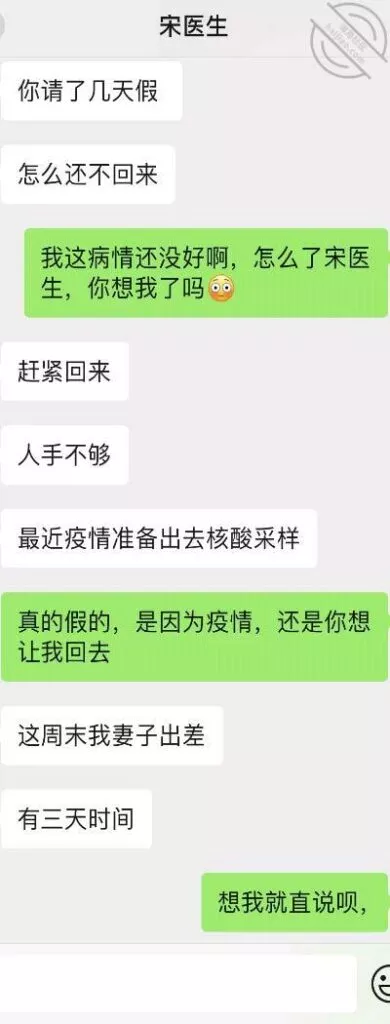 今天下午正在发呆的时候,我们科主治医生 给我发消息,明面上让我回去工作,实际上是告诉我她老婆周末出差想要和我进行鱼水之欢!看来他很想念我的口活,我敢保证没有哪个男人能在我的嘴里不射的。