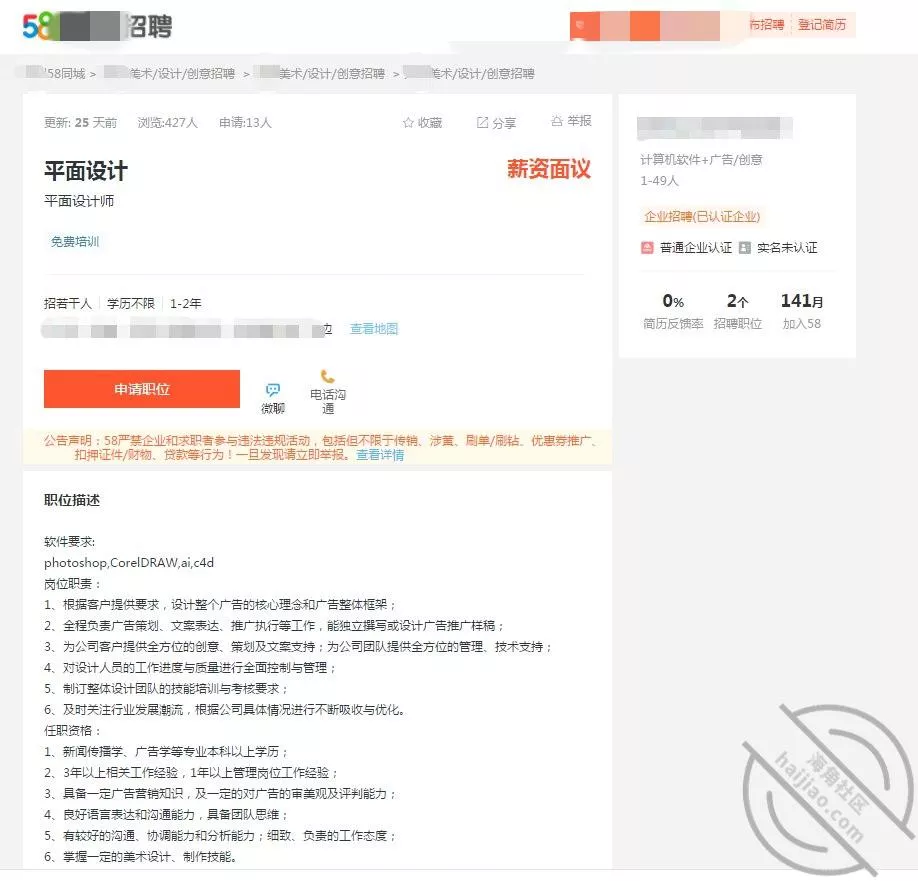 浑浑噩噩过完年后,从今年正月初八开始,设计工作室还得继续,我就在58同*上发布招聘信息了。在这小县城,人员少,也没几个人来应聘。之前来的那几个人,也嫌工资低。哎,这年头生意不好做,好不容易把疫情熬过去了,倾尽不少心血干了这么多年的行业也不能说扔掉就扔掉