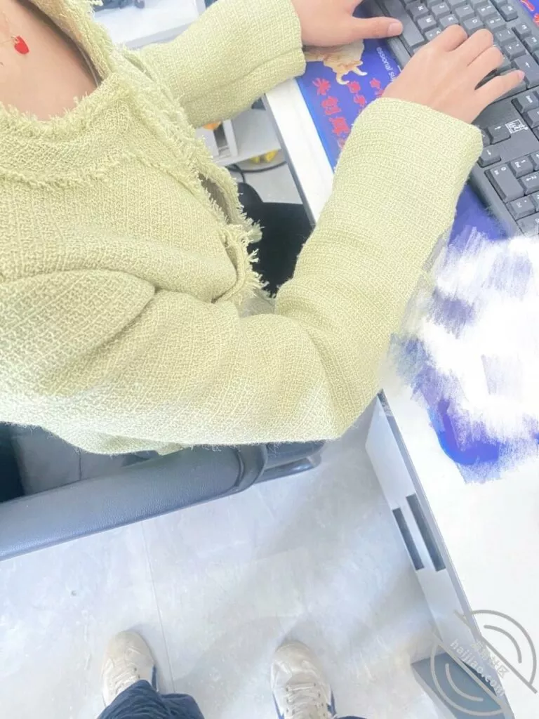 我今天七点多就到了办公室,因为昨天的设计方案有个地方急需修改一下。看着空荡荡冷清清的办公室,还有点想小周周了呢。我只顾盯着电脑工作了,也没去留意几点了。直到两条白嫩光滑的大腿出现在我的面前时,我才注意到办公室进来人了。我还以为是顾客呢,一抬头看竟然是小周周!