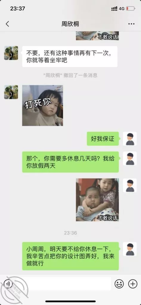 “不用老板和哥相互转换了,咱是小公司没别人一直叫哥就行。”