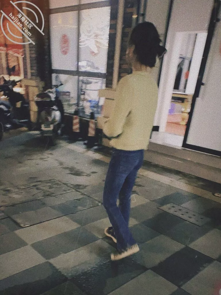 她把扔茶接过去的时候,还碰到了我的手!那一瞬间,我感受到了女孩子手特有的柔软和温热,我都很久没摸过女孩子的手了,虽然这次是被动的,也算是第一次肢体接触了吧!中午一起出去吃的饭,我请她吃的牛肉面。回来上楼时,她在我前面。趁机拍一张给大家一起欣赏一下美腿