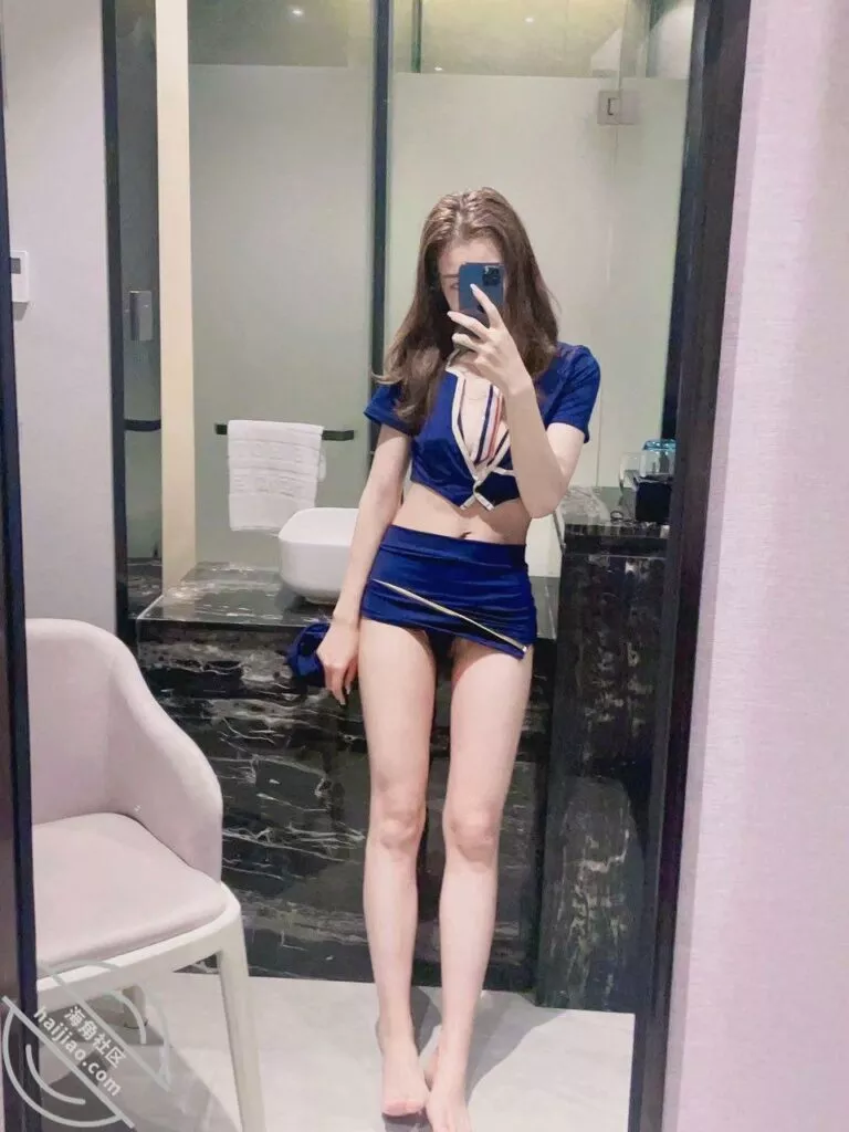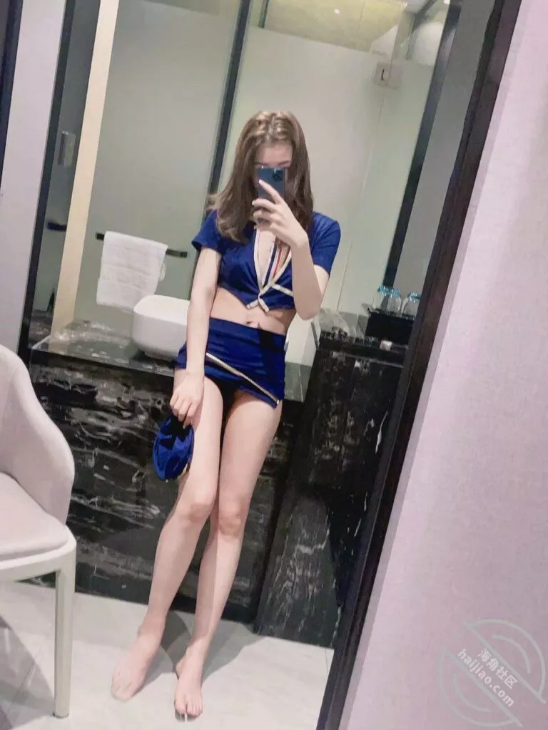 我本以为买的制服可能会有点松垮,毕竟周周虽然高挑 但毕竟匈称不上波涛,可是我没想到这制服仿佛就像是量身定做一般,周周穿上的一刹那间我感觉我好像是高价约了一个空姐外围。空说无凭,上图!!这腿比我命都长啊,怎么样兄弟们,是不是给我赚到了,唯一美中不足的是丝袜还未到,兄弟们先将就着看吧。