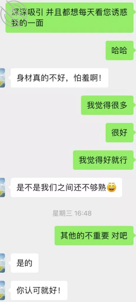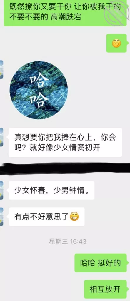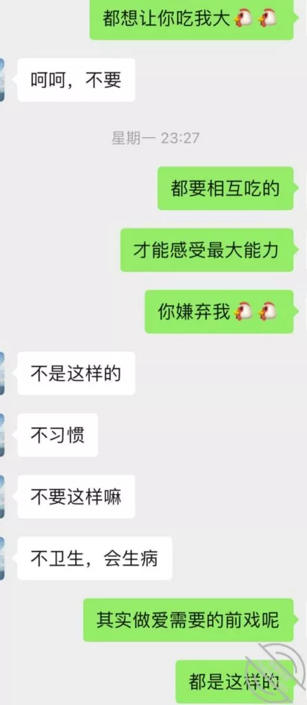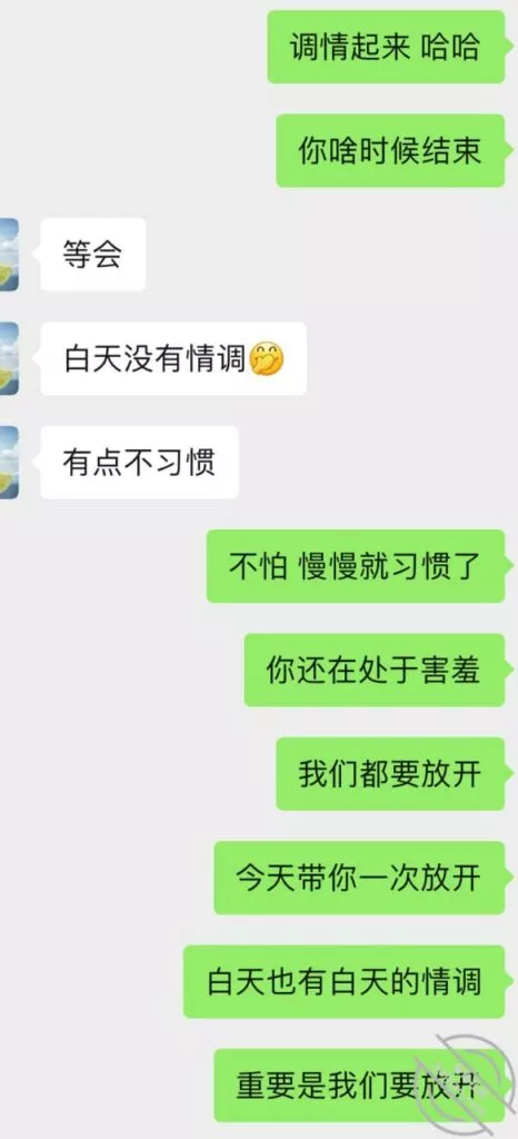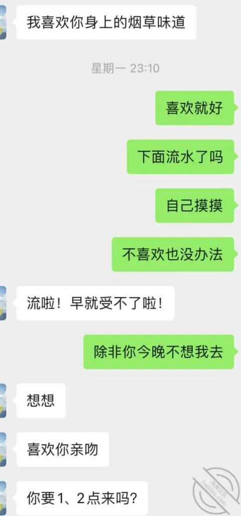 这次结束以后又重燃了她的激情,大概过了一周吧,就忍不住给我发消息,按她的说法估计是又被点燃少女的激情,开始变得主动想要了,我平时比较忙偶尔才有空去,所以每天有空就会微信撩一下她。